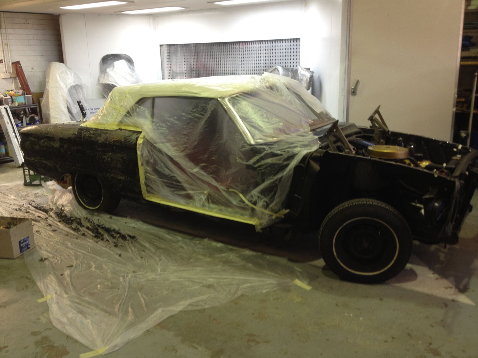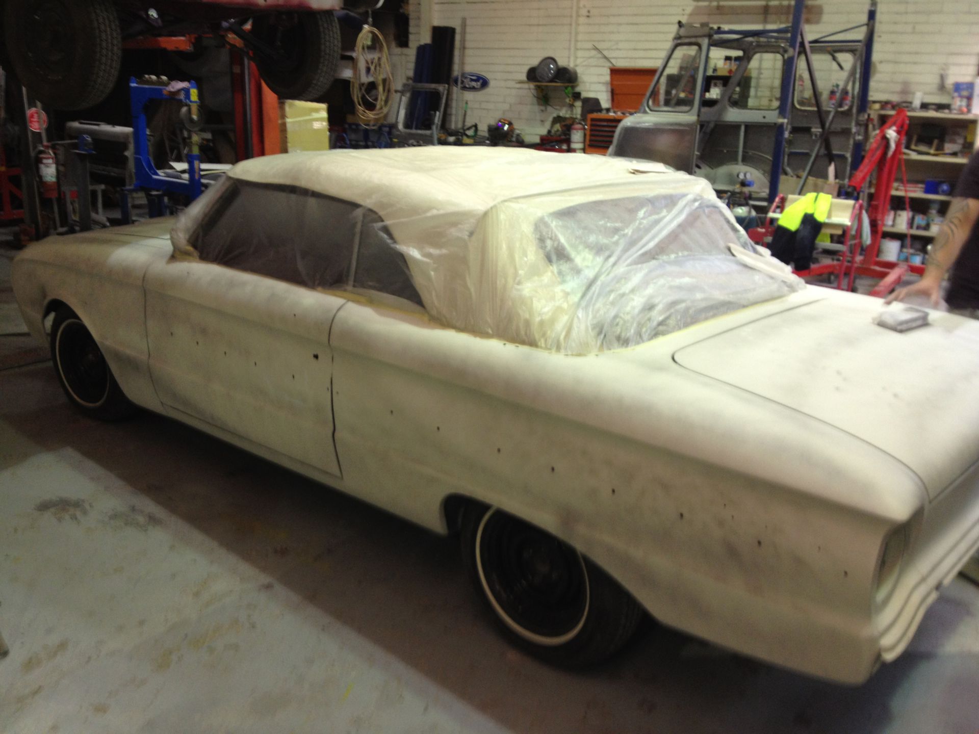 The XM Convertible came in for some repairs to a damaged drivers side door and front guard, and as the repairs began the owner requested that a total bare metal respray was to be undertaken. As you can see from the pics, the black paint was hiding a multitude of  sins, lots of rust and even more body filler! What start off as a simple door repair turned into a full overhaul and respray which also included some mechanical and wiring work, fitment of a thermo fan, electric ignition, and a remote brake booster. The brake system was also overhauled as was the window winders and roof mechanism all this has brought the XM back from decades of poor repairs and rust damage to a nice looking reliable cruiser.